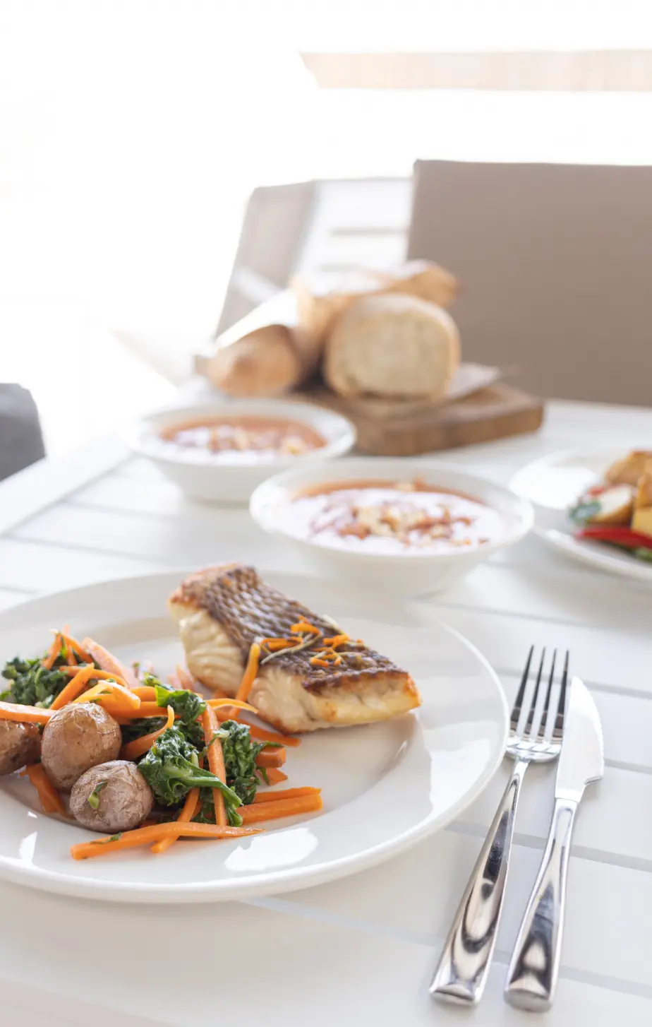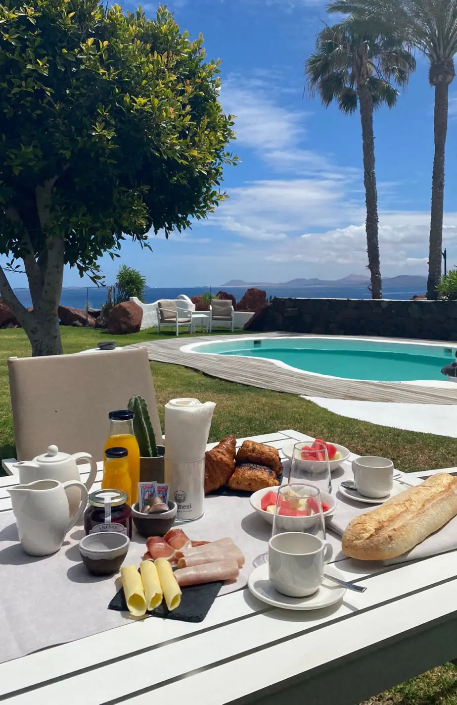 Jeden Morgen erhalten Sie ein fantastisches kontinentales Frühstück an der Tür Ihrer Villa, mit frisch gebackenem Brot und Gebäck aus unserer eigenen Bäckerei, Marmelade, Butter, frischem Obst, frisch gepresstem Saft, Käse und einer Auswahl an Wurstwaren.